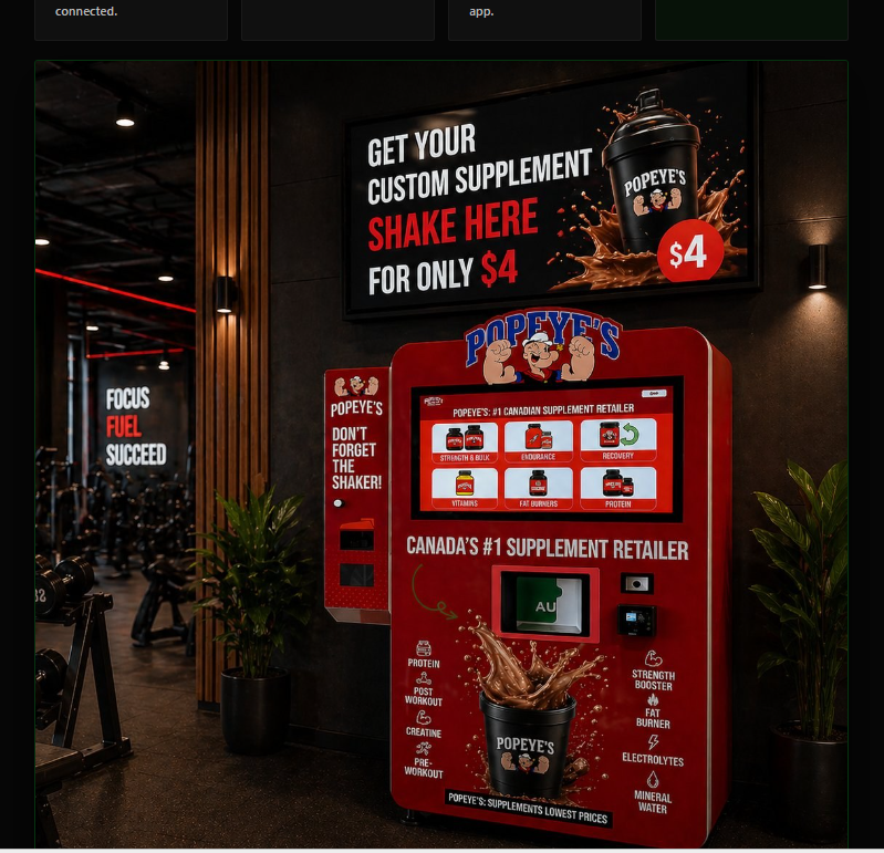 UrShake has built Canada's first app-connected supplement vending platform. We're inviting Popeye's to make it co-branded — turning every gym into a daily Popeye's touchpoint, a new revenue channel, and a customer pipeline back to the retail stores.